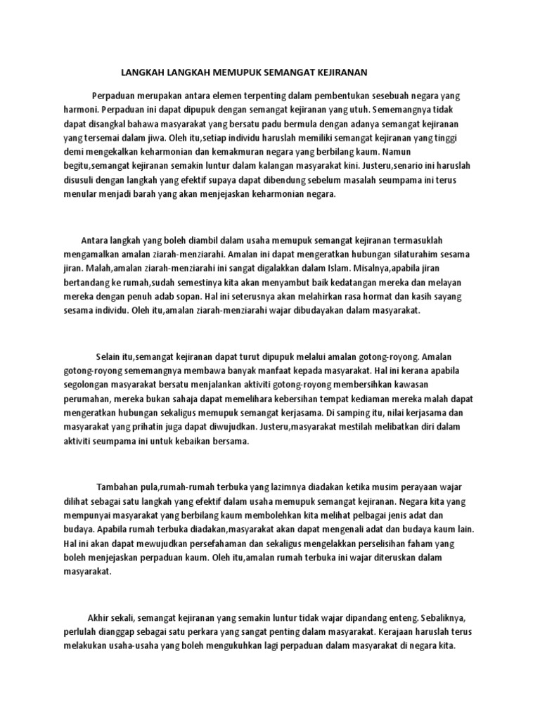 Da banyak cara tips teknik dan panduan menulis karangan yang baik dan bermutu. Pada pendapat anda apakah langkah-langkah yang harus diambil supaya semangat kejiranan dalam kalangan penduduk dapat ditingkatkan. Oleh itu dengan meningkatkan semangat kejiranan perpaduan akan bertambah utuh dan teguh.